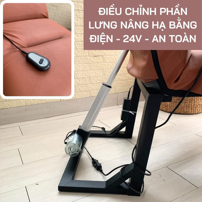 Phần lưng được chỉnh lên xuống hoàn toàn bằng điện, đây là điều quan trọng nhất cho người già.